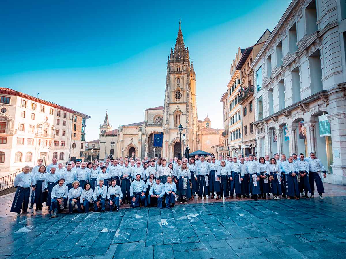 Este año se eligió el Teatro Filarmónica para poder dar cabida a los más de 300 asistentes, entre los que se encontraban los 38 nuevos Cofrades, resto de Cofrades de número y de Honor de nuestra Cofradía, integrantes de otras Cofradías, autoridades e invitados. Como siempre, nuestra Cofrade Bea Campal presentó el acto y el Cofrade Mayor Miguel Ángel de Dios lo dirigió. Agradecemos al Ayuntamiento por su continua colaboración y que nos haya brindado la utilización de todos los espacios necesarios para el Capítulo, así como a la Universidad de Oviedo, que aunque en esta ocasión no fue sede para el acto por la limitación de aforo, siempre pone a nuestra disposición lo necesario.